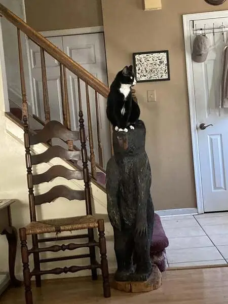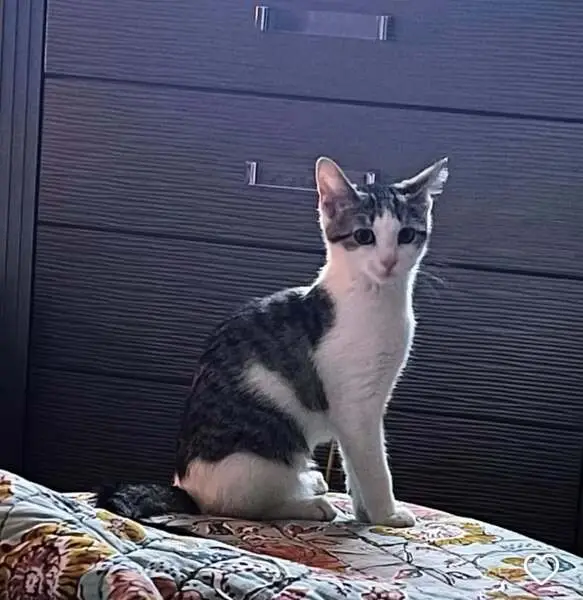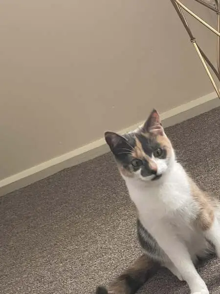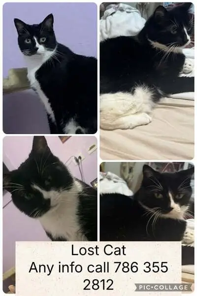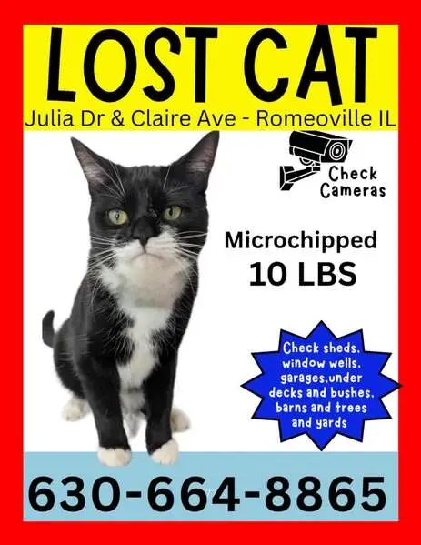 Found behind auto shop that backs up to Weisinger Dr. In the Westwood subdivision. She is a small black and white, tuxedo short hair. Very friendly.