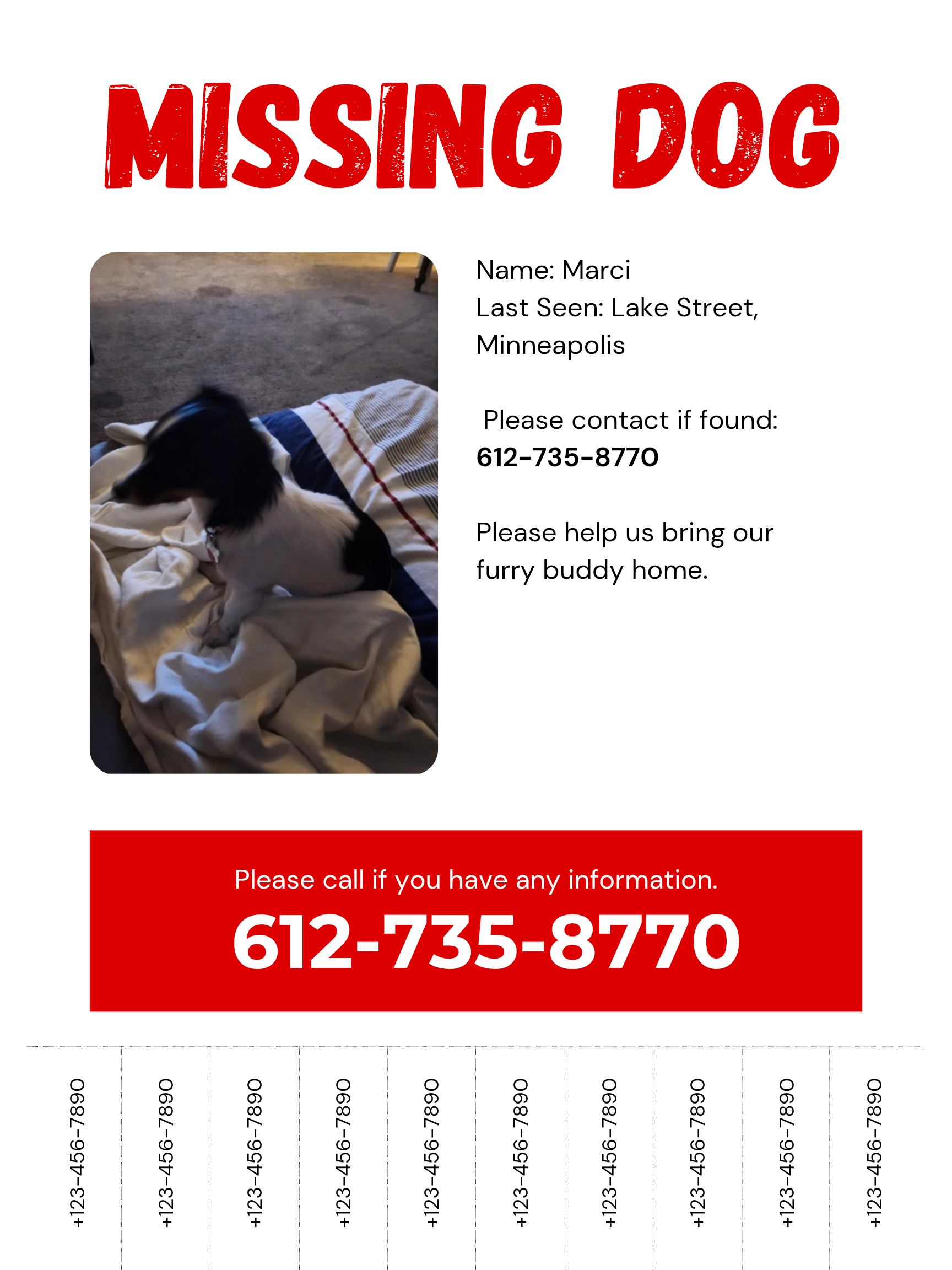 Missing dog Minneapolis, photo: Lost Dog: Brown Head, Loves Belly Rubs!