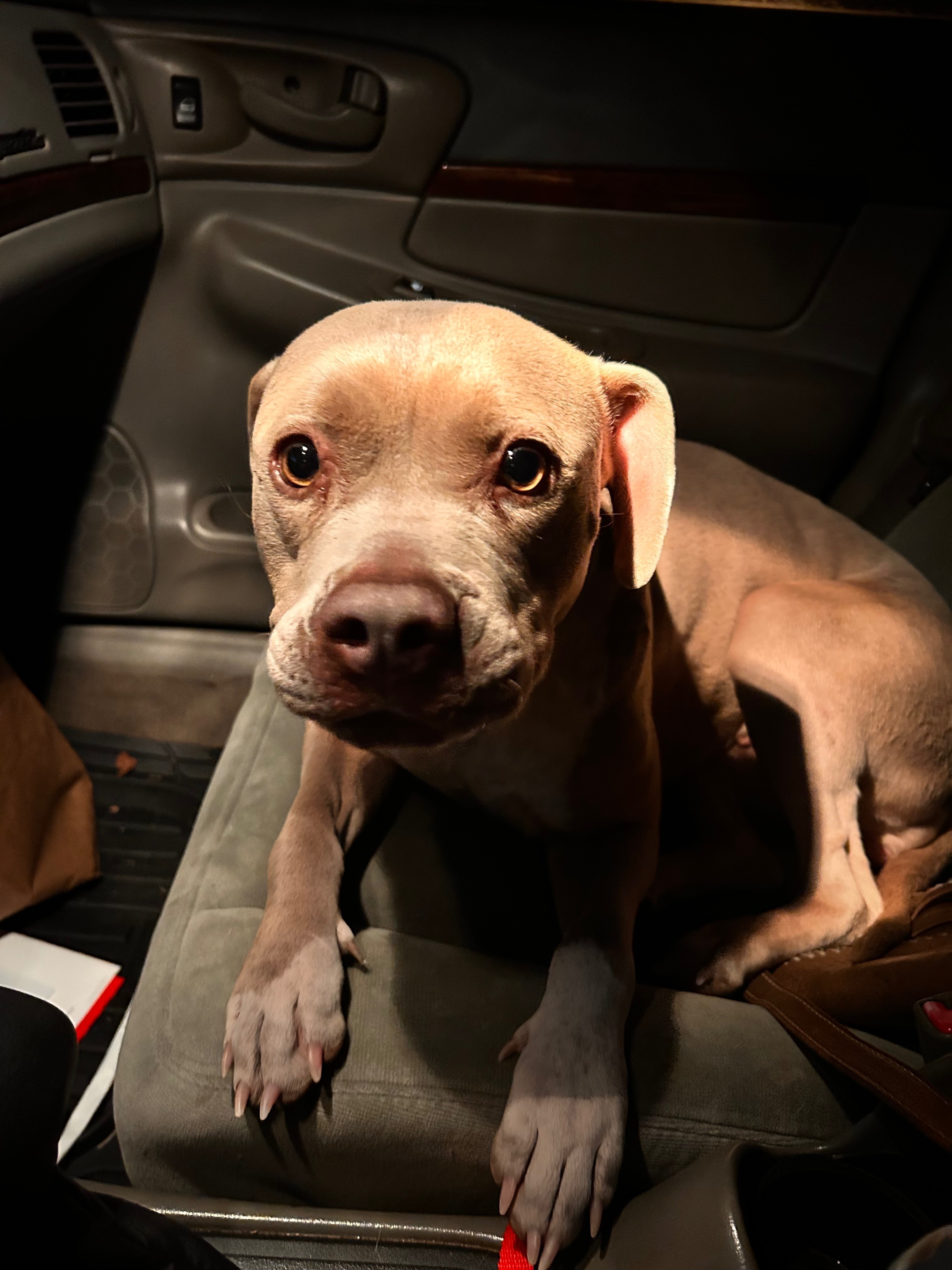 Star is a tan and a little bit of white on her chest pitbull. Her and our other dogs got out of our gate and hours later they all returned except Star.