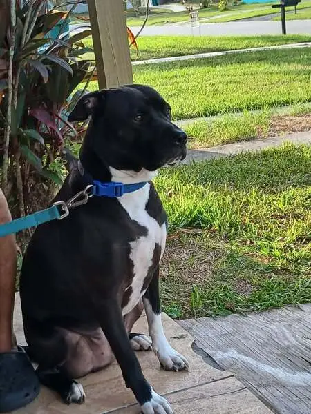 Have been hanging around the area for 2 to 3 days. My neighbors were unable to catch her, but I was able to get her the first time I went out there. She does not really like other dogs or cats, but loves people very much she’s beautiful and in great shape, other than slightly skinny, probably from being lost.