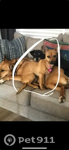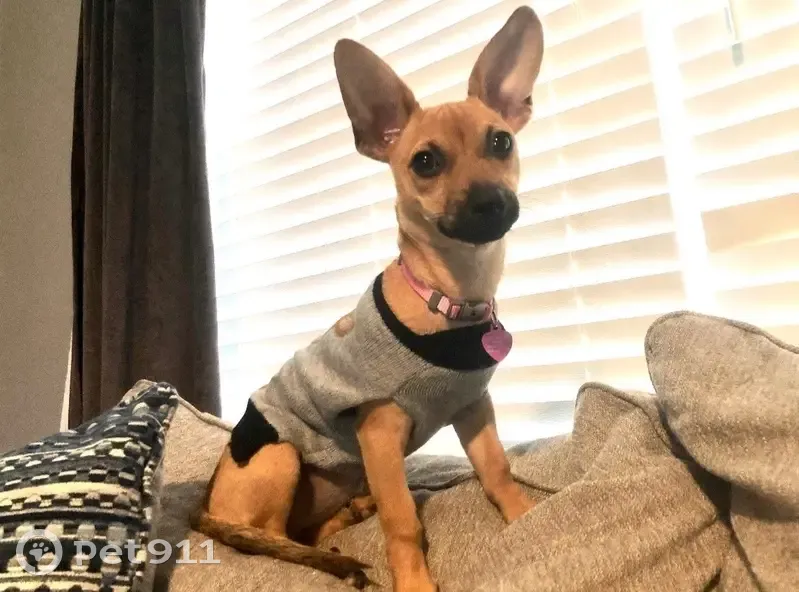 Tan fixed mixed breed female Around 17lbs at her last vet visit Extremely friendly - will come up to you! Missing her collar and sweater - she is chipped!
