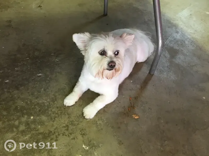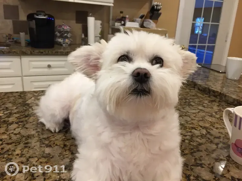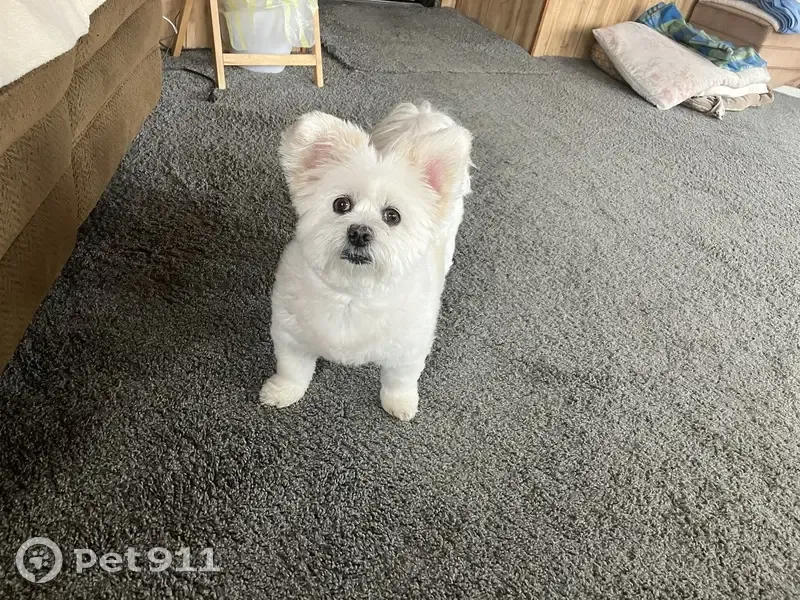 She is a white 14 year old maltise dog named Lily. Very friendly and sweet She was let out Friday night 3/13/2026 to go potty and it was windy and a electric transformer blew and a branch fell and scared her and she took off