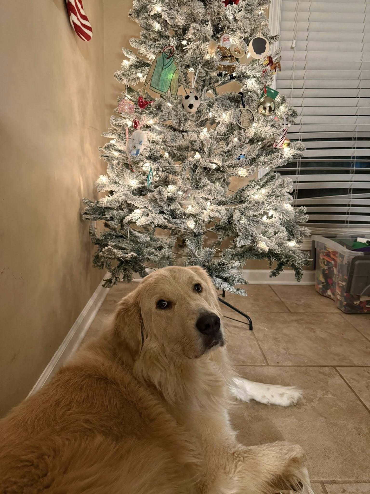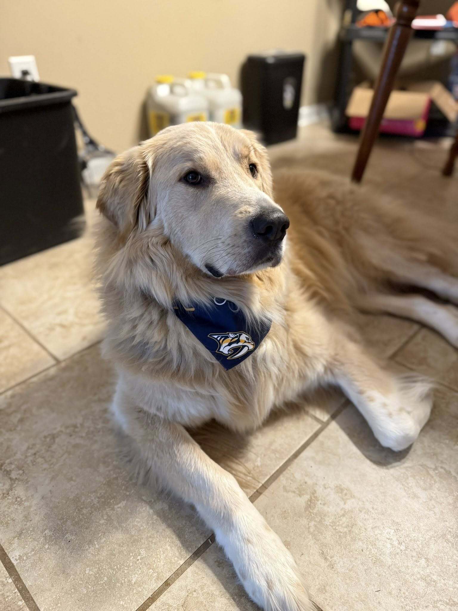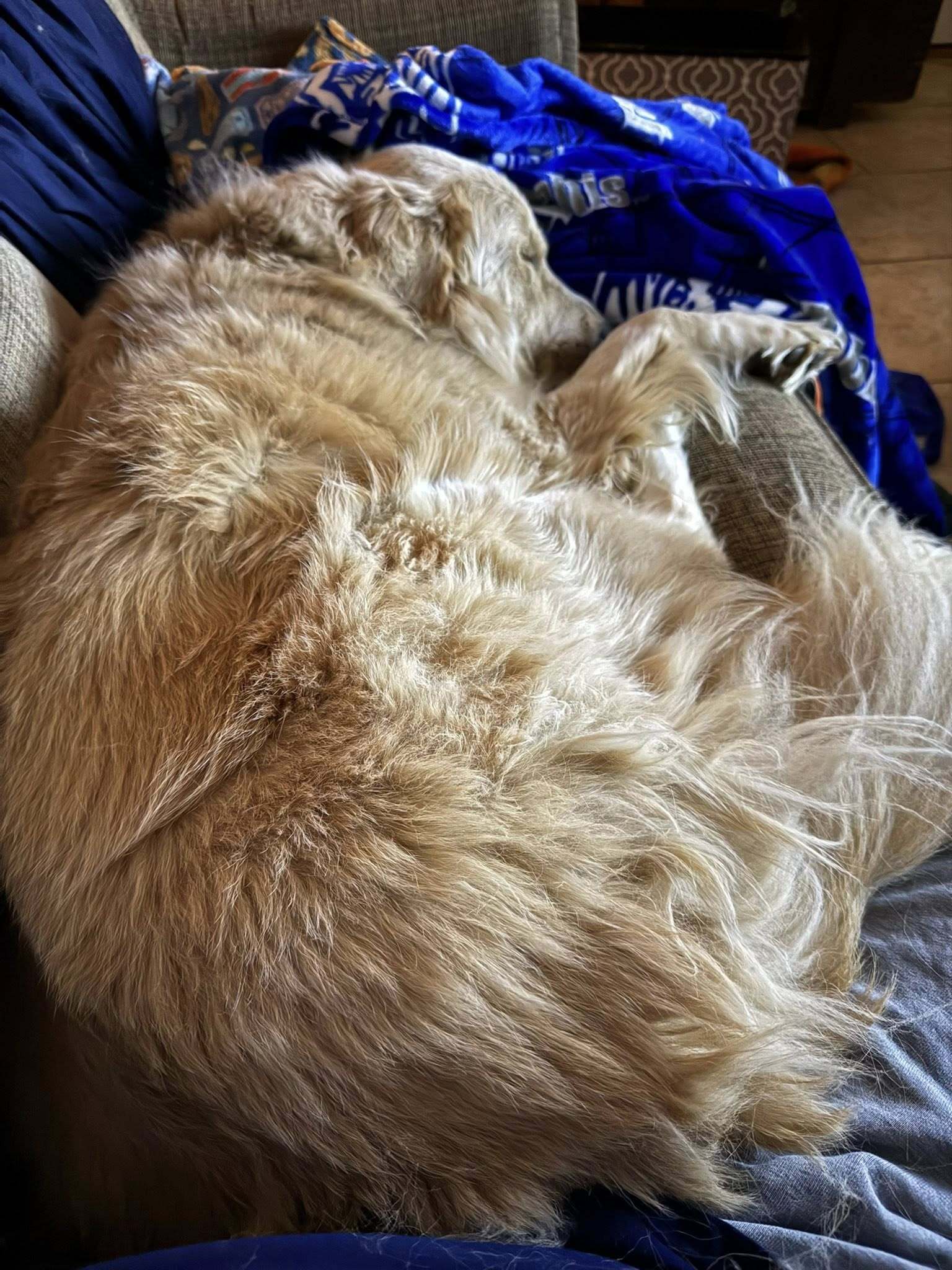 Goose somehow got out of the fenced-in yard he was in on 12/23/25 (time unknown). He is wearing a choke chain collar and IS microchipped on his back shoulderblade area. He is a long-haired tan/gold/yellow coat. He is friendly but will probably bark at strangers & has only been in a scuffle with my neighbor's dog (territorial male).