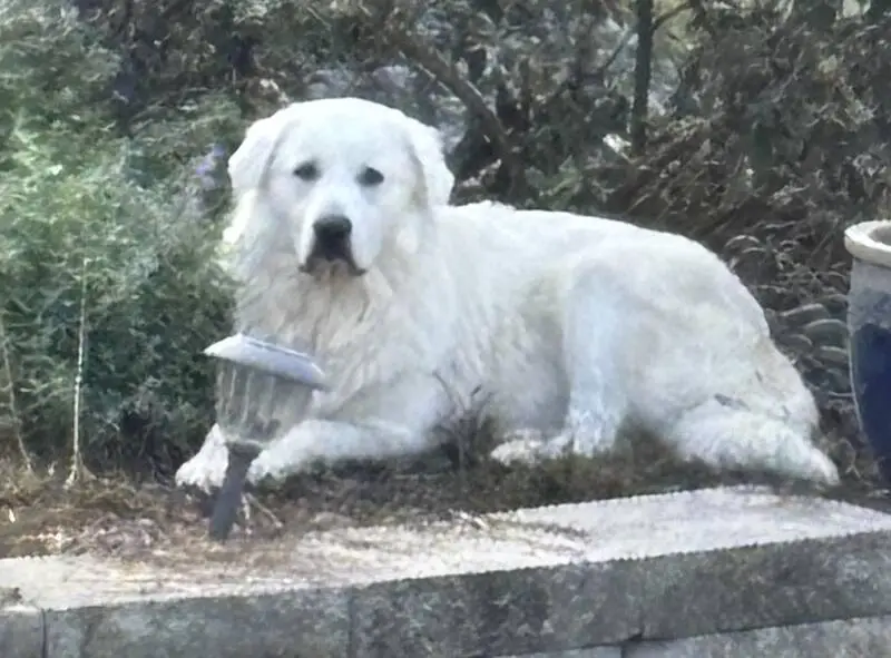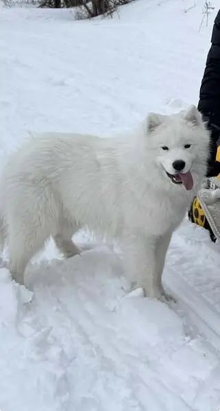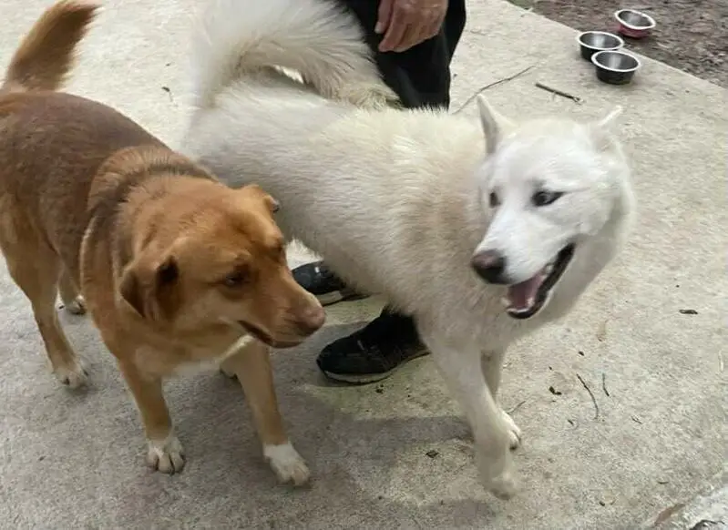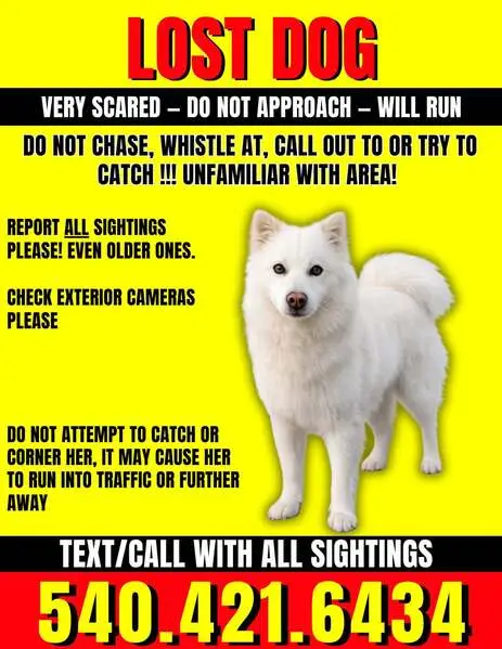 White with burgundy collar she's so sweet friendly good behavior she was walking around and stop when I came outside she approached to me ..I wish I can keep it but I have 2 already