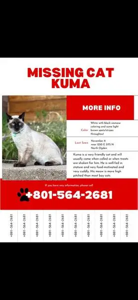 Siamese mix, very friendly & cuddly, found at Idaho Humane Society in Boise but had been transferred there from the Burley shelter. Reported as a stray but she was spayed and definitely domesticated.