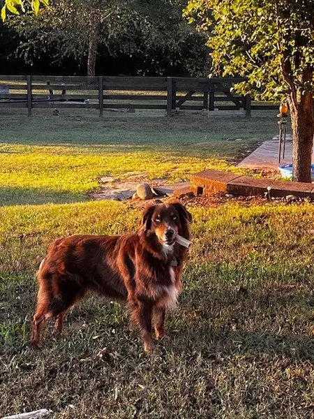 All Black female dog 26 lbs. Resembles a border collie with pointed tall ears and long feathered tail. Pink floral design collar with no ID. High energy, believe to be young. Great with other dogs and people and pays attention to commands.