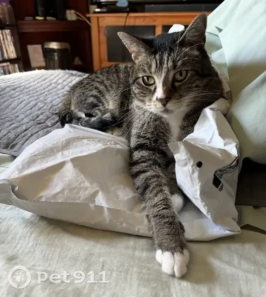 LOST kitty: Georgie is lost and we are missing him very much. He is gray and black striped with white on his chest and paws. He is very skittish, so he probably won’t let you get close. He was last seen around 69th Street and Frontage road. Call or text 785-294-2265