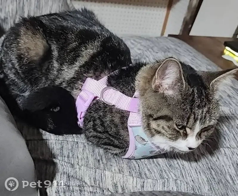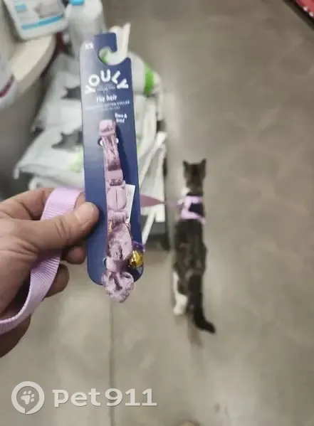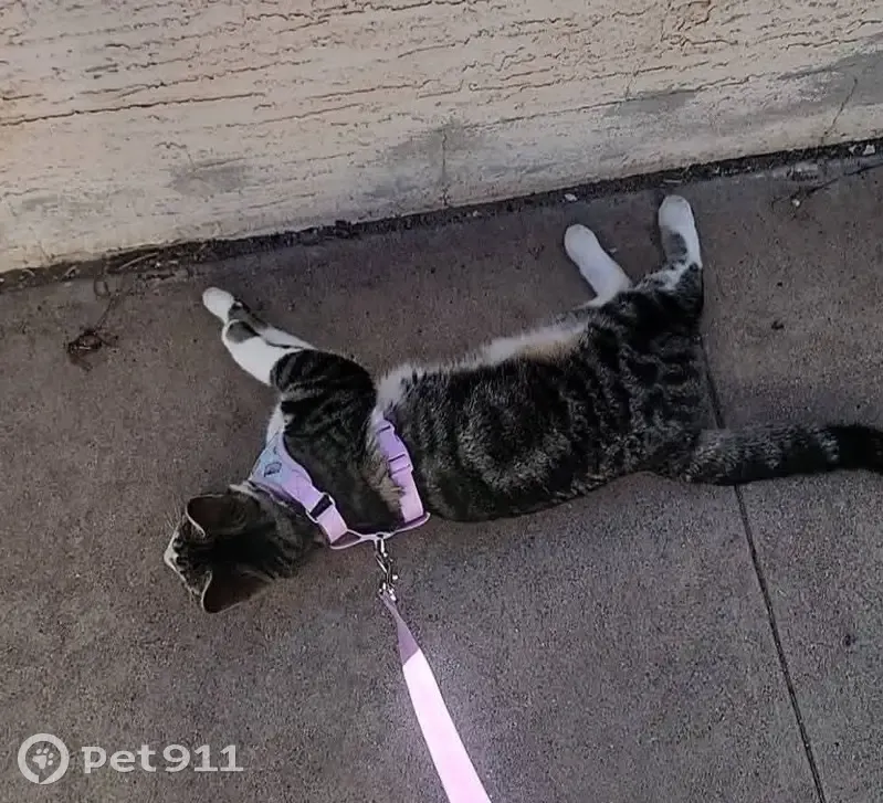 Roughly one year old. I just got her. I was still trying to decide on a name but leaning heavily on Piper Roommate accidentally let her out last night just after midnight. Last seen in Mesa, near McKellips and Country Club - more precisely, near Robson and Jasmine St. She is wearing the collar pictured but not the harness.