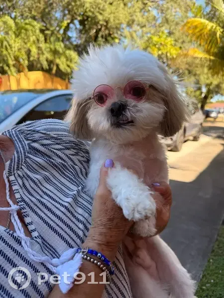 White Male Shihtzu around 6 pounds. A very short hair cut. He went out during trick or treat, he got scared. He is on treatment due to a recent surgery, we need to continue with his medications.