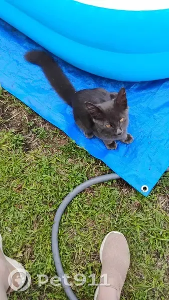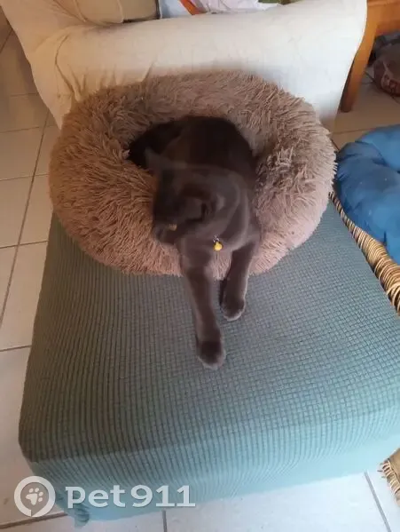 Smokey. Dark gray coat. Blue break away collar. He is neutered but ear is not clipped. He is vaccinated. No tag or micro chip. Long bushy tail. Yellow to orange eyes. Hates being indoors. Loves to wrestle as long as he is winning. Responds to Smokey.