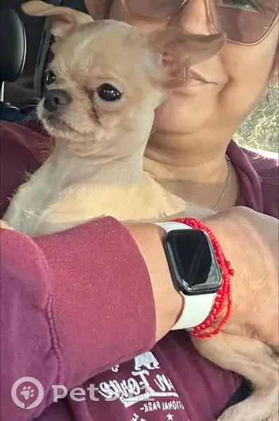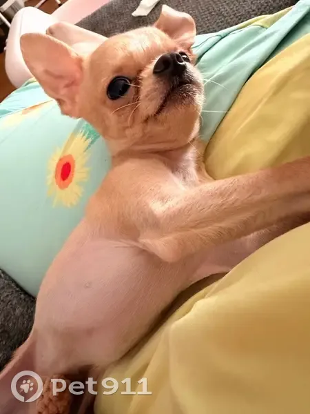 He is a blonde/ cream and small white spot on forehead. He is very friendly, gets scared easily but will just try to hide- not viscous at all. He snuck out of our side door late last night unnoticed.