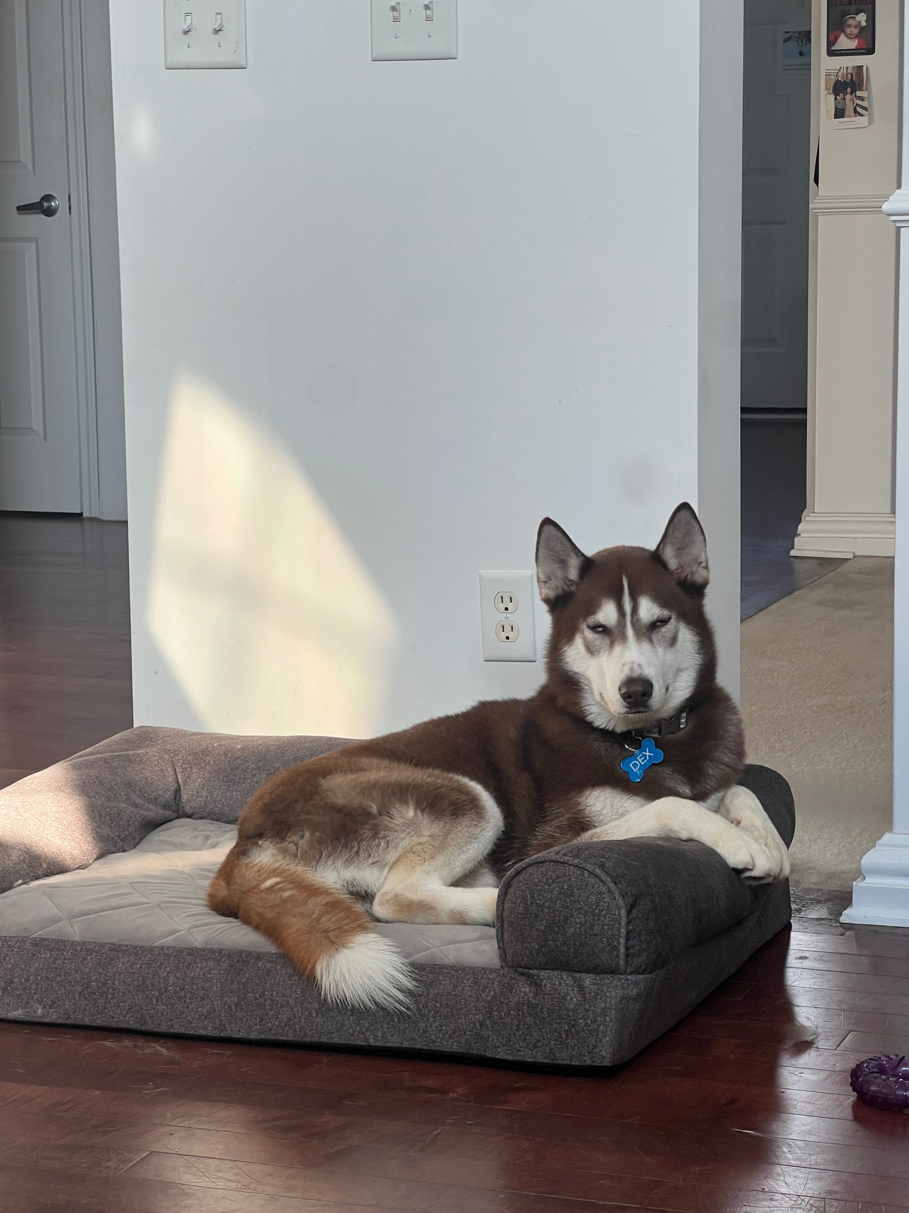 Dex is a Siberian Husky, 1 1/2 years old. . Is brown and white. He is micro-chipped and had on a geeen choke-collar and somehow got off his dog-run ant our home in Novi, Michigan on December 24, 2025. Our phone number is (313)590-4878.