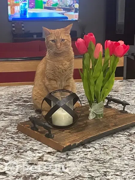 Orange neutered male tabby with light cream rings on tail. Pete got loose from his harness and is lost. Weighed about 10 pounds when lost, probably thinner now. $1,000 REWARD! Call 405-600-4141 or 405-990-6396