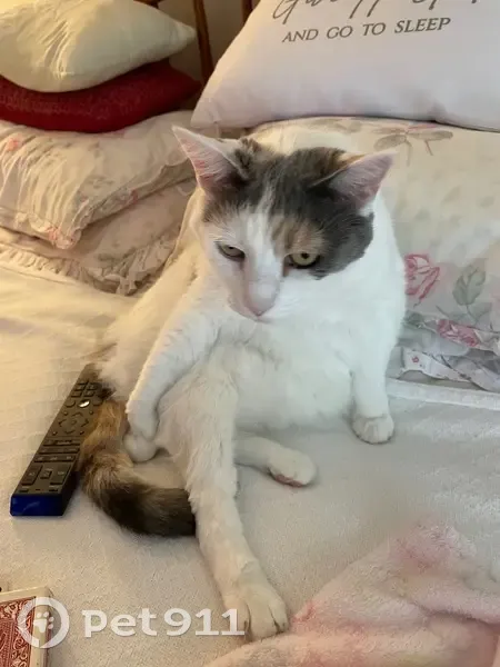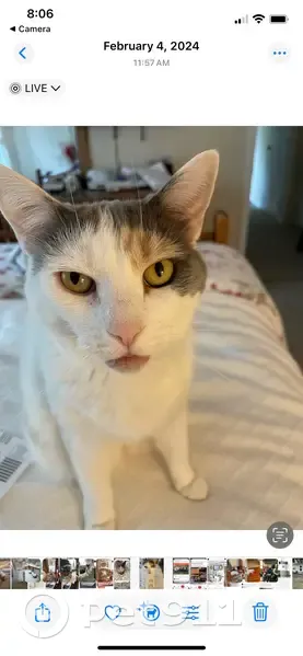 Charlie is a white female cat with grey and tan on her face and tail. Shes chipped no collar. She 7 years old. She has some hind leg paralysis. She has been missing since Friday 11/21 @ around 10:30am. If you find or see her please call Ann Marie 484-319-7462