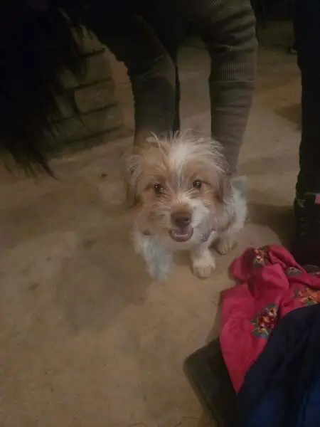 Brown head black and while body floppy ears. Will most likely run from you unless u have food or try to play with her. She loves belly rubs! Call her babyyy or tophhh call me @ 612-290-3913