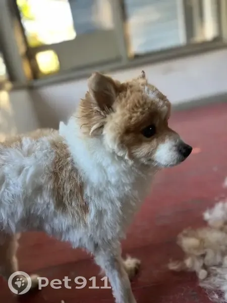 White and tan or cream he’d 12 years old looses a lot of fur he disappeared 10/10/2025 in the fenced yard when I let him out to use the bathroom he got through a small hole that was in the fenced yard.