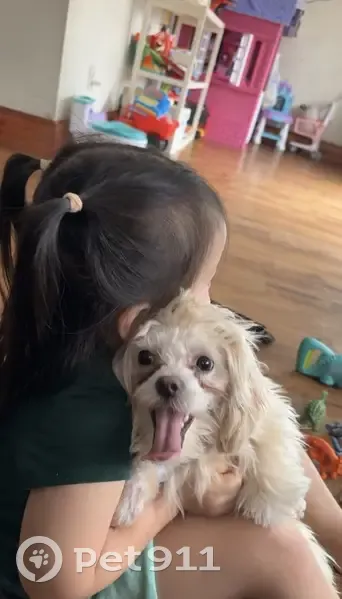 Layla went missing on April 4, 2026 at around 5:19 PM. She is a small white dog, very friendly and playful. She has medium-length white fur and is wearing a pink collar. She is microchipped. Her paws and the fur around her mouth are trimmed shorter.