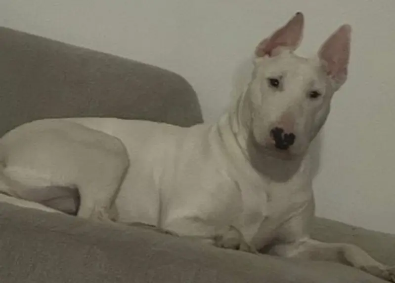 Update, Has been FOUND. At home now. White female dog with black/brown spots on her face. Very friendly. Medium to large built. Wearing collar. Should be traveling with brown small dog. Will go to strangers. Not aggressive. Very happy dog.
