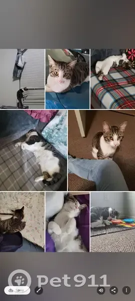 Black and grey on top and tail. White under belly and chin. He had a light purplish blue flea collar when he went missing. He is neutered. He is very loved and missed dearly. Please help me get him home. 5808903051 or 8168773464