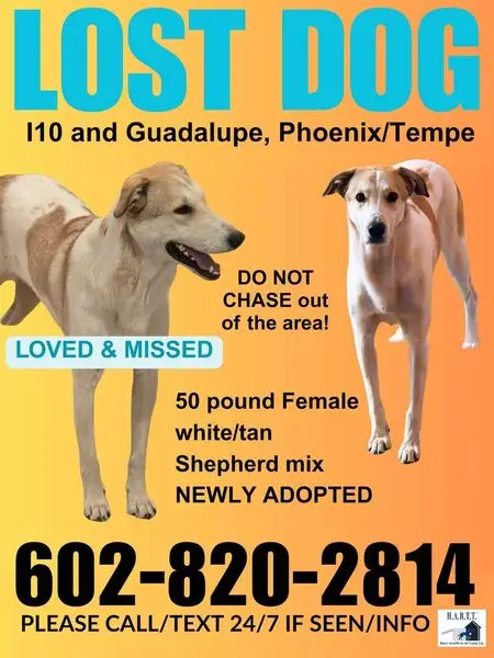 Tan and white with a curly tail. About 40 pounds. Dug a hole under the fence during a thunderstorm. Very skittish and not trusting of strangers. VERY HEAD-SHY. Will snap if someone tries to pet his head.