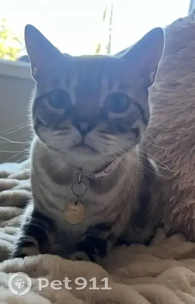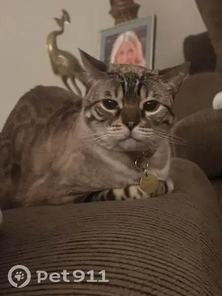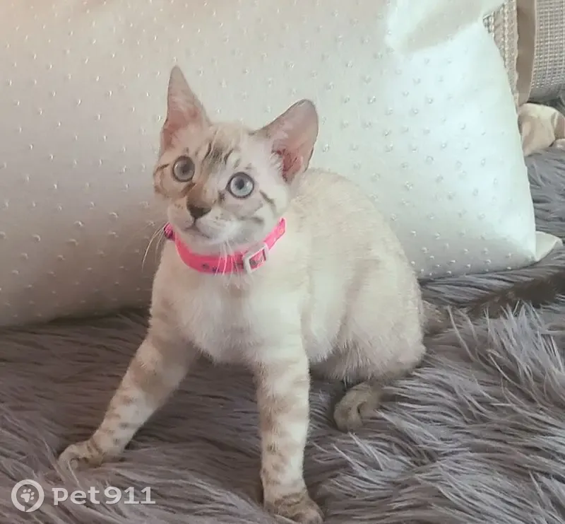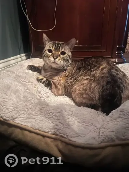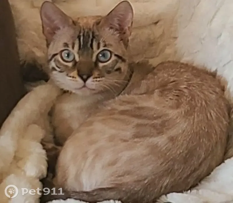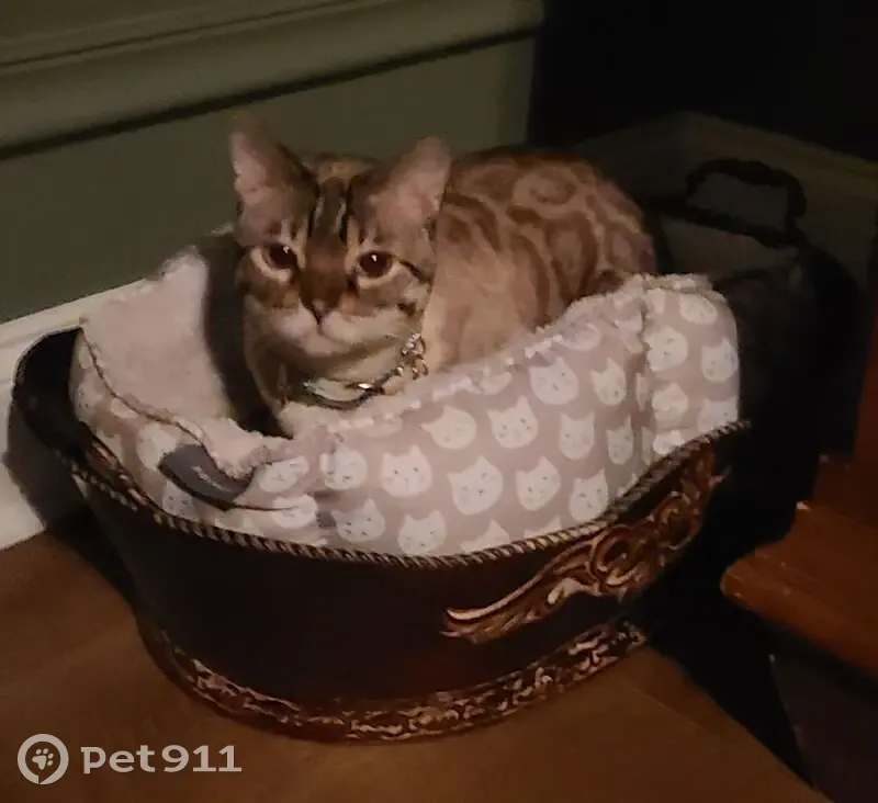 4 year old :Bengal" Tabby Point. In Morrison Plantation development At approximately 5pm she was in back yard that has a 6ft wood fence & somehow jumped over without noticing. Had dog tracker use its scent & last possible site was over by community pool. No citing for 4 months. She is microchipped spayed & de-clawed. She is loved & greatly missed.