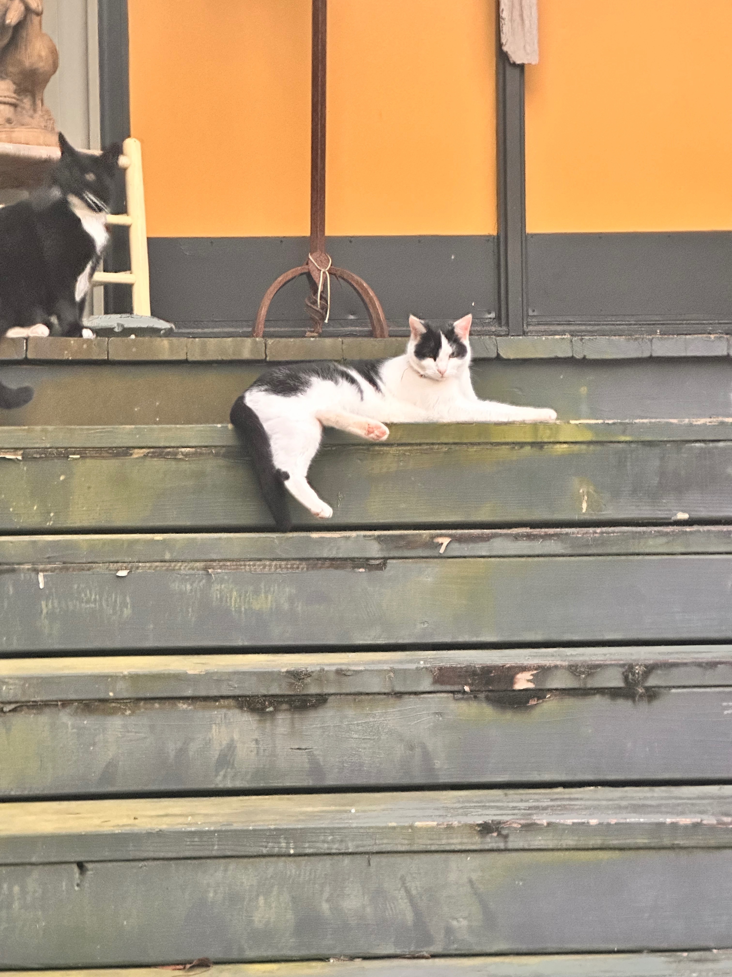 Mostly white with black. Should have a black collar with reflectiveness on. Came home from work, she usually is in my bed when I get home, but she never showed up.