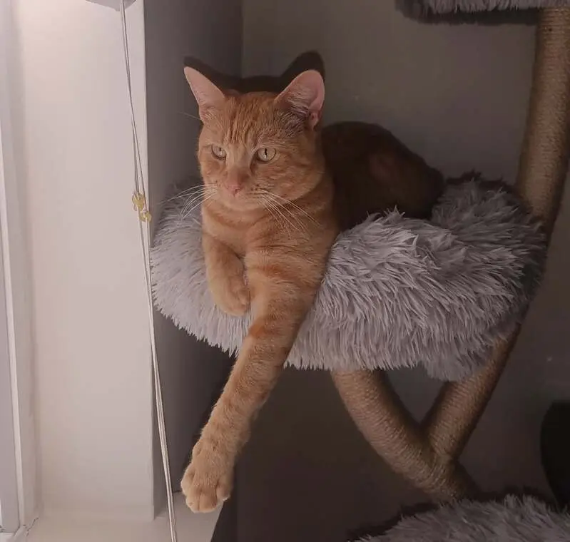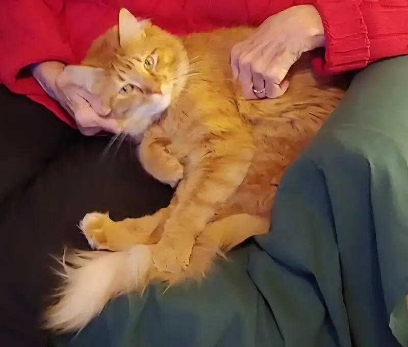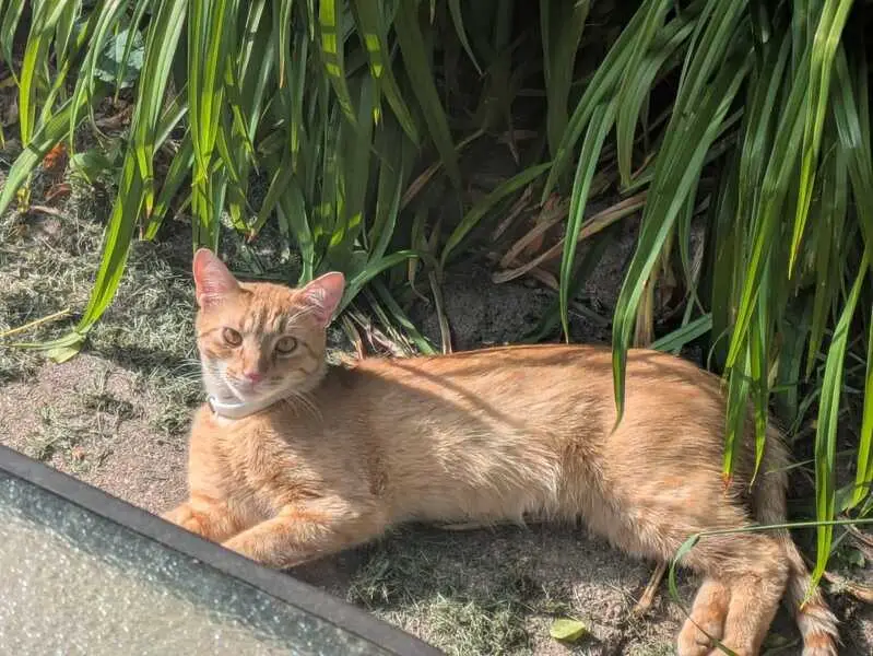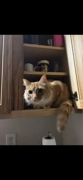 Orange tabby, quite large and thickish, definitely over 10 pounds but not overweight. Whitish tip to his tail. Not neutered. Found him crying outside my window and though he was skittish he didn't seem to want to leave the window, and let me pick him up. Seems accustomed enough to being handled.