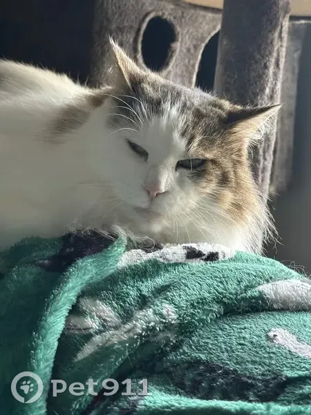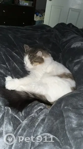 Long haired white and tabby. He’s very skittish but very sweet and most likely hiding. He ran out the door w/out me noticing on 11/09/25 around 6-7pm. I’ve looked everywhere for him and have no idea what to do. He’s not familiar with the area at all