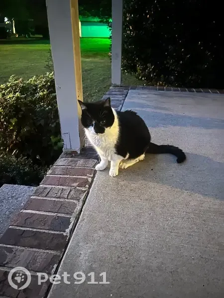 She’s a black and white Senior Tuxedo style cat and her face and back is solid black with her neck, belly, and legs white. She has a cute black dot on her right rear leg. She’s an inside and outside cat but mainly inside and she went out early evening and never came back home and she never does that! She’s always ready to come back in after an hour outside!