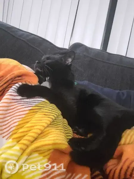 He's black with a green collar that has white paw prints on it, a silver tag with our info and it has a blue paw print. He's neutered, microchipped and wary/ shy of strangers but may come to you if he hears the Crack of a sheba pate serving being separated. He's an indoor only cat but got out when he was terrified during the moving process (long story) We've done everything that's been suggested aside from me personally looking for him more (we were moving out of state and we (6 of us) looked and drove around for as long as we could. Since then I've had a few other people look for him and a neighbor was putting fresh food out but there was no sign of him returning.