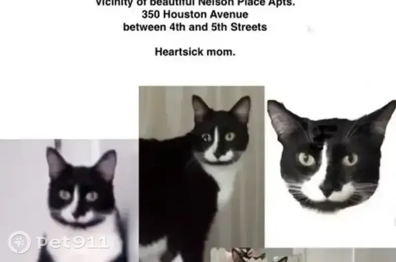 Eddie’s most unique physical trait is a white ‘stripe’ down his nose shaped like an upside down question mark. Please take a picture First. Text to 231-331-3304. Smartest not to approach him because he will likely run before I can get there. He Is undoubtedly scared and hungry. Call softly a few times in high-pitched voice. Try to follow him from a distance, if he moves on. If you are SURE that you can grab him (You’ll have One chance.), grab by the scruff of the neck (the loose skin between neck and shoulders) like how mother cats carry their babies. Hold firmly and strongly! Do NOT loosen your tight grip! Secure him in the closest spot even if it’s a box, shed, or garbage can, . Grab Deeply into the scruff and hold him Like You Mean It! Holding a cat this way protects you from claws and jaws and it doesn’t hurt them, (but they’ll wriggle to release themselves from your grip). Hold on! Eddie, 12, is almost exclusively an indoor cat so he must be hungry and scared. Use of a HUMANE trap with tuna fish and water is an option, too. He went missing August 19th, but on September 1st a neighbor thinks he saw him hanging inside and outside an abandoned house at 1211 Monroe Avenue which is 2.5 blocks from home. He is a tuxedo cat. Black on the top and white on the bottom with white feet. If you find him deceased, I want to know. For $500, in that case, take his body to any vet who can scan for a microchip, thereby, assuring us both that it’s him.