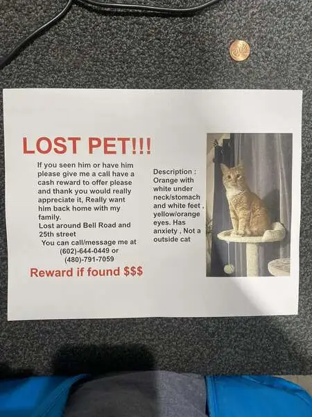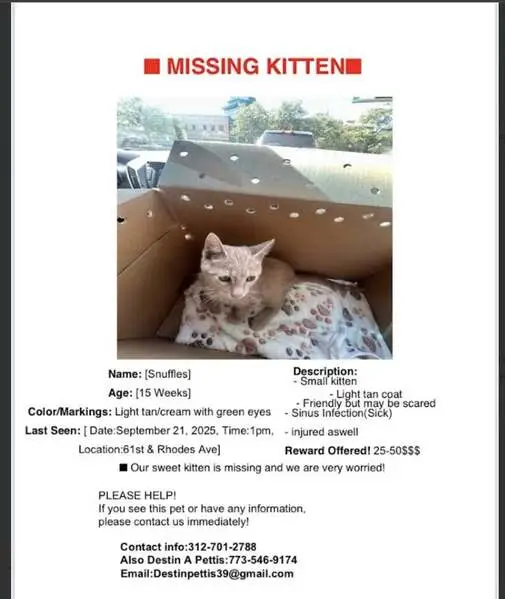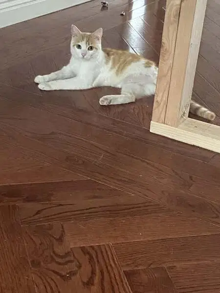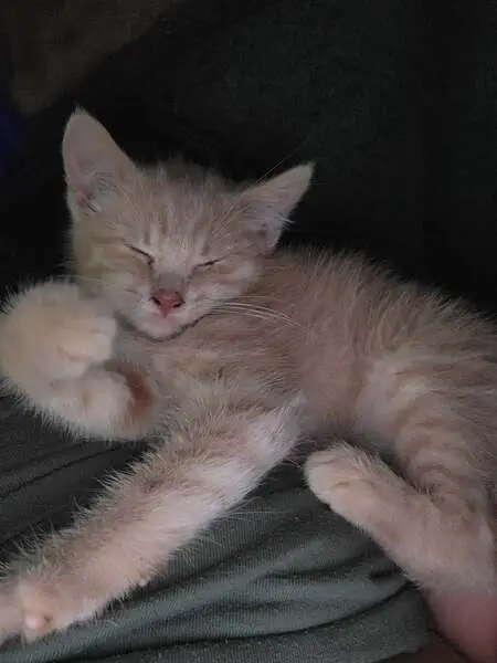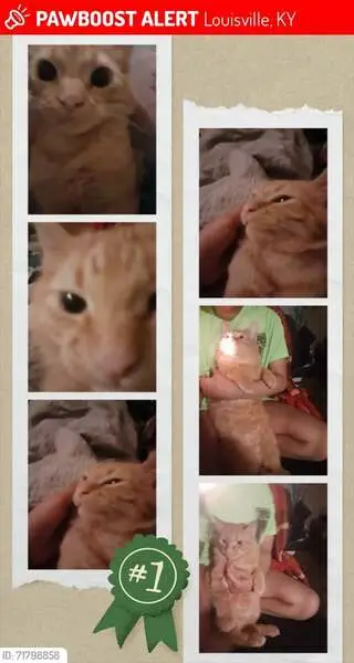 Pale orange coat, extremely fluffy tail, very small and looks to be very young. Has a black birthmark on the right side of its face. It has been micro-chipped but it wasn't registered to anyone.