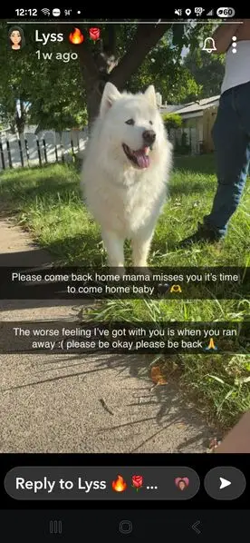 We have found a white female husky. She is Likely less than a year old. She had a pink collar on when we found. Very sweet and well mannered.