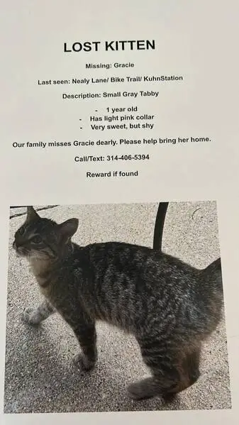 FOUND CAT - NEAR CYPRESS EDGE APARTMENTS We believe this is someone’s missing kitty!! She doesn’t seem to have any flees but isn’t fixed or microchipped, extremely sweet, walks right up to people, comfortable being held and pet, loves attention. Very very affectionate. She has been inside since yesterday and is being taken care of. We can’t keep her due to already having a few pets, if this is your kitten please DM me or text at 2252260228!! I would hate it if our fur babies went missing!