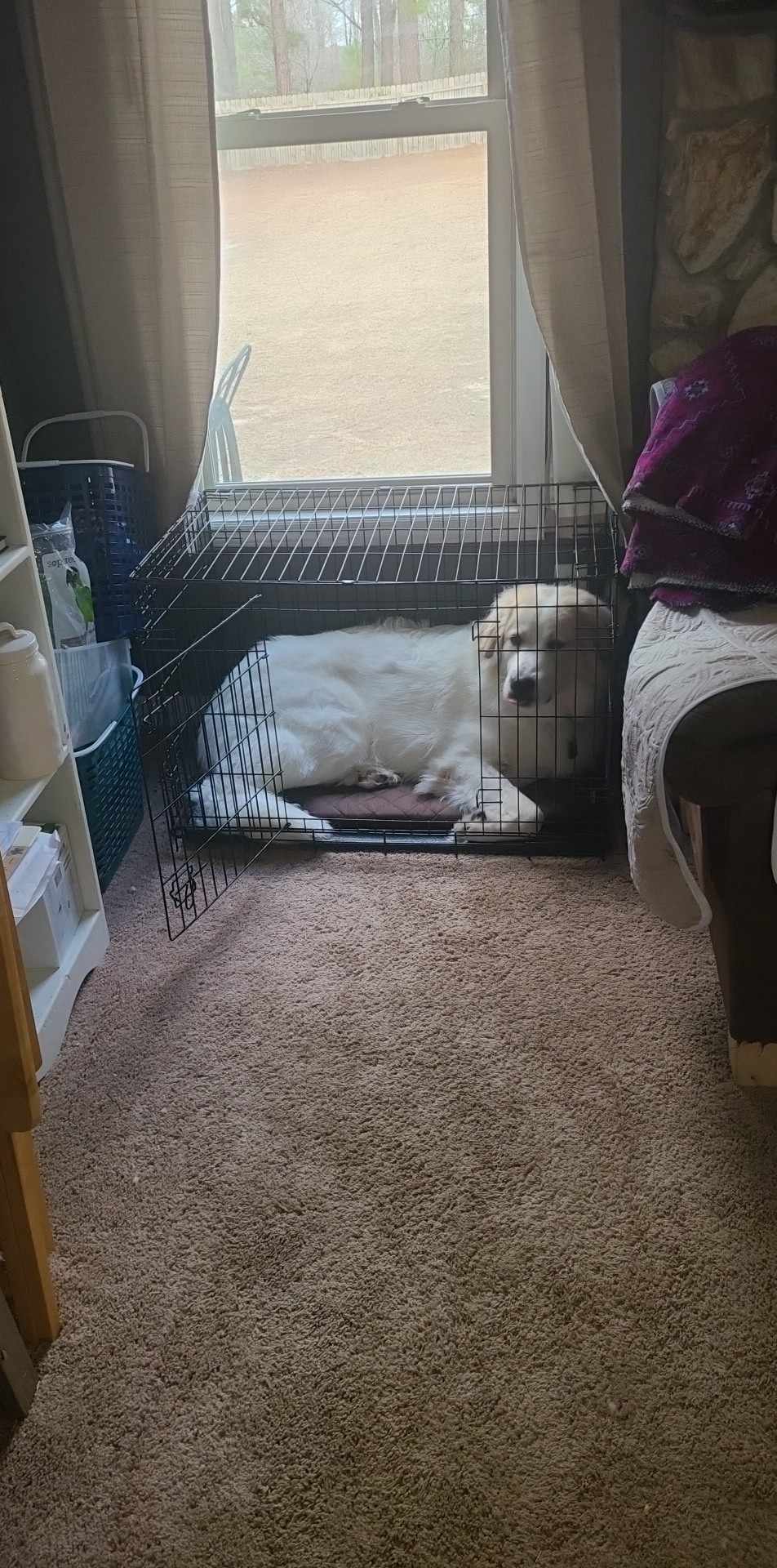 Tagilla is white and tan colored. He has a pink nose with black dots on him. We let him out to use the restroom and he was gone, our neighbor used his drone and deer camera to help. No luck and we have searched everyday :(