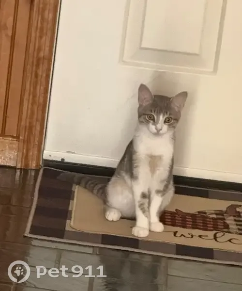 Teddy is a very gentle indoor cat who was adopted and lives with feline cerebral palsy. He has balance issues and moves carefully. Teddy is not used to being outside.We noticed on our camera that he slipped out when the door was left open and scaled away.Please, if you see him, contact us right away. Teddy is vulnerable and needs to be brought home safely. He white and gray cat , he comes when called by name.