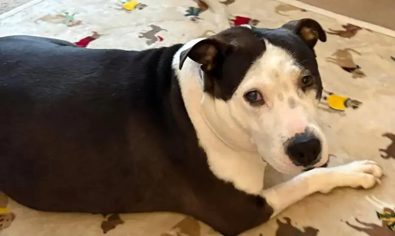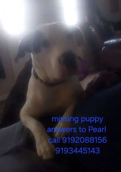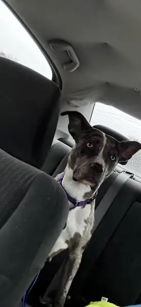 White with black spots, very friendly but also skiddish. Not sure how long she has been on the streets. Found her looking for food in the street. Great on a leash, loves to give hugs and kisses. Great with other dogs, does not bark at all. She knows how to sit and play with toys. Not aggressive when eating or drinking.