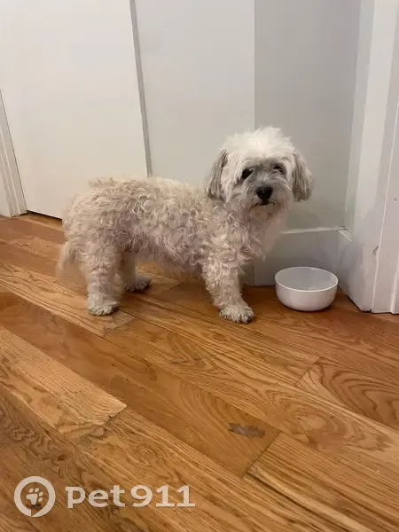Found last night roaming on corner of Greene Ave/Broadway White, poodle mix. She is very sweet but looks like she escaped from someone’s yard, checking to see if she’s chipped tomorrow.