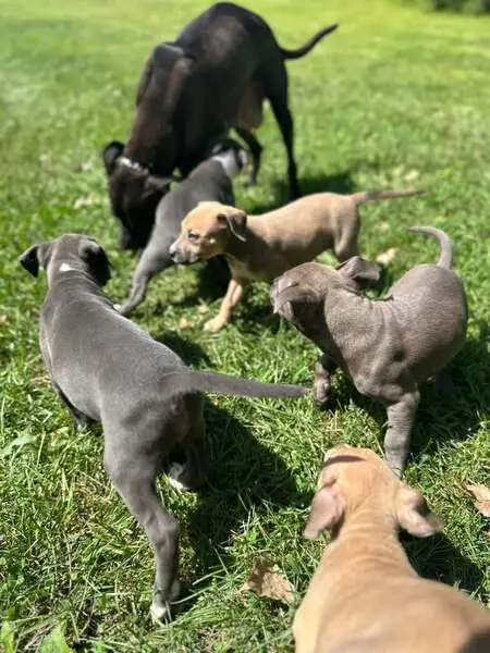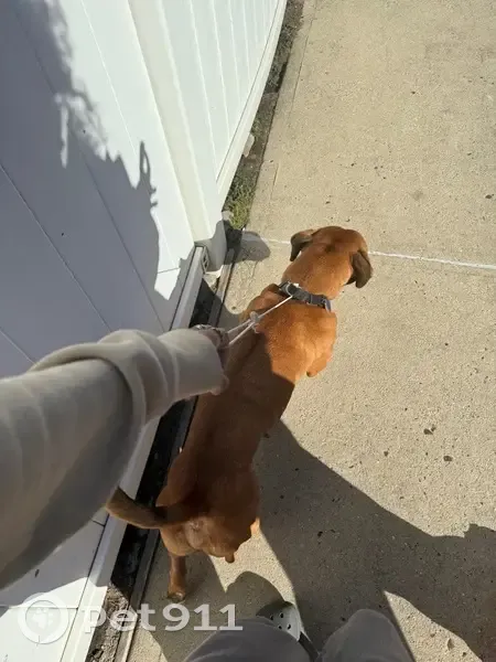 He looks a little skinny , he was wandering in the street eating things off the floor so we bought him dog food He looks to be about 5-6 years old, has a ack collar on with his dog license tag
