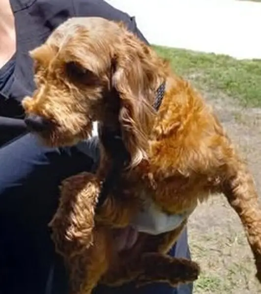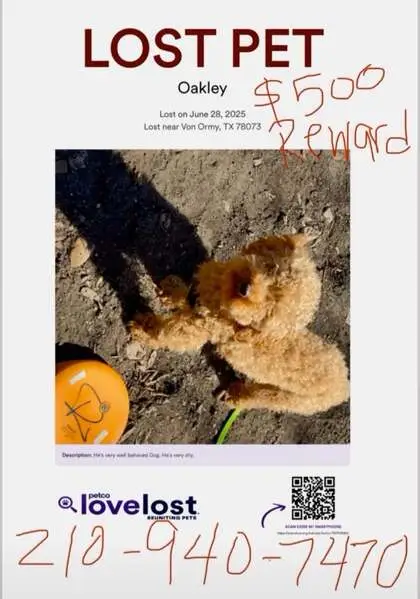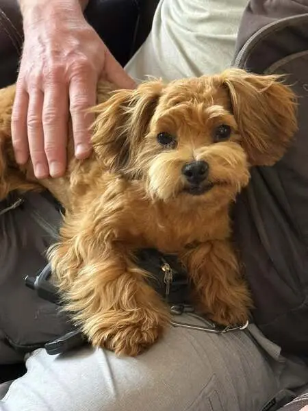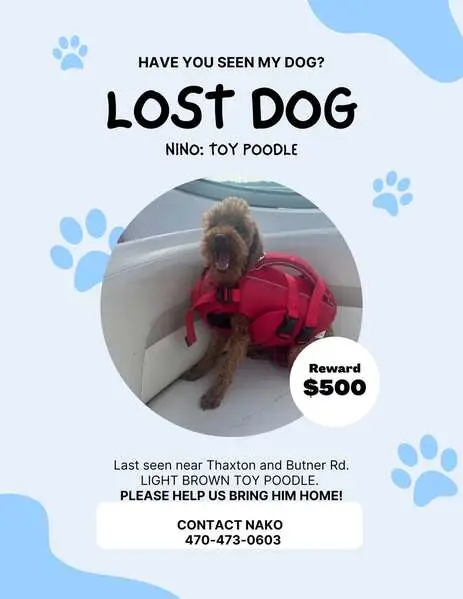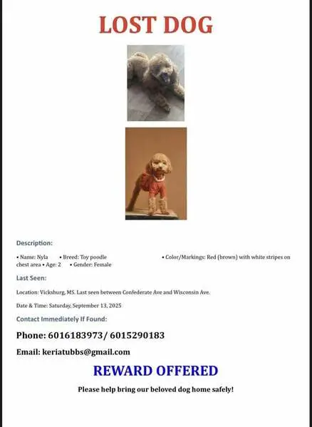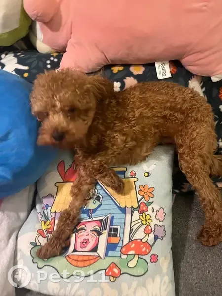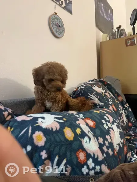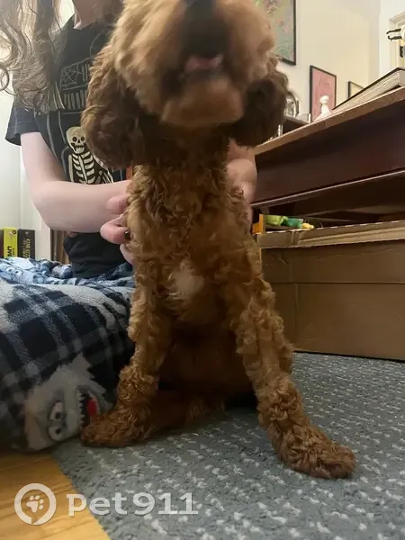 Red/brown toy poodle, male, diamond of white on his chest. Front wrists are shaved indicating perhaps a recent vet visit? No Microchip or collar, found near Spencer and Willoughby alone late at night.