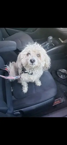 His name is Benji and friendly but shy. His is a poodle and weight about 10lbs.