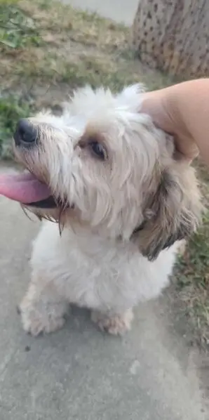 She has a purple collar with nothing on it just her pet vaccination. She is friendly but she can be scared if people try to pick her up. Her fur is mostly cream but on her ears she has a bit of grey and she has a little bit of white fur on her neck near her chest. She has a brown nose and brown eyes. She got lost because I was walking her and she was on the leash we were coming home but out of nowhere she got lose and she wasn’t on the leash anymore and she ran and I ran after her but couldn’t catch her.