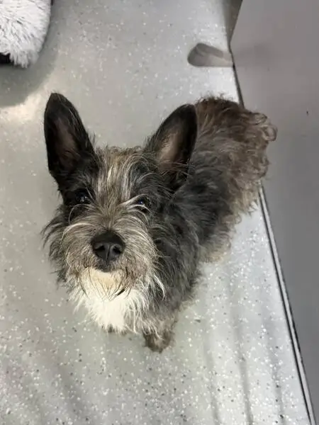 She has a little white on the tips of her front paws and she has white underneath her chin going down into her chest she’s dark grey and she’s chubby and her legs are a little bowed due to and old hip issue she’s around 4 yrs old and shes a combination of dark grey white with a tad bit of brown in the face and silver hairs throughout her coat. My son was playing took downstairs in our building with a friend for the first time and turned his back for a second and she got out through a door dasher by accident and he didn’t know until a few mins later and she’s a fast little one who knows her area very well from her walks so I believe someone took her while we were searching for her because she disappeared so fast and she’s never ran off before and she comes from a big loving family so her running off didn’t make since especially in the timing. Please help me find my fur baby and I thank you so much. She is truly missed by me and the rest of her family thank you again ️.