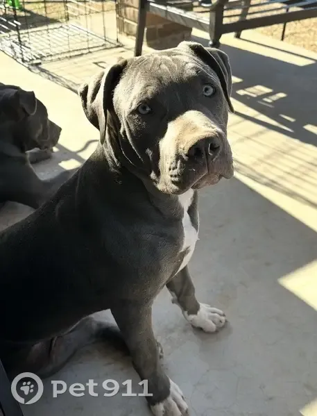 The wind blew our back gate open and our dogs escaped. King has white paws and a white chest. He’s also microchipped and fixed.