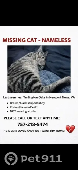 Pet911.orgNewport NewsLostCatsLost cat, Turlington Road, Newport News - brown with black stripes