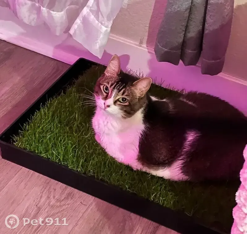 • Female cat, 6 years old, ~12 lbs • Very Friendly • Black & white short hair • Bright green eyes • White stripe on her face • No collar, but microchipped She slipped past me one night when the door was cracked. It rained heavily during the first week Mewtwo went missing, so she may have lost her scent, gotten displaced, is hiding somewhere quiet and dry nearby, or someone took her in.