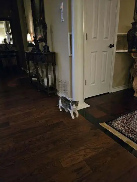 This cat hangs around Icon Lakewood. She’s very vocal and sweet. Looks like her tail has been caught between something and seems hurt. Please reach out to me if you have any details on whose this may be!