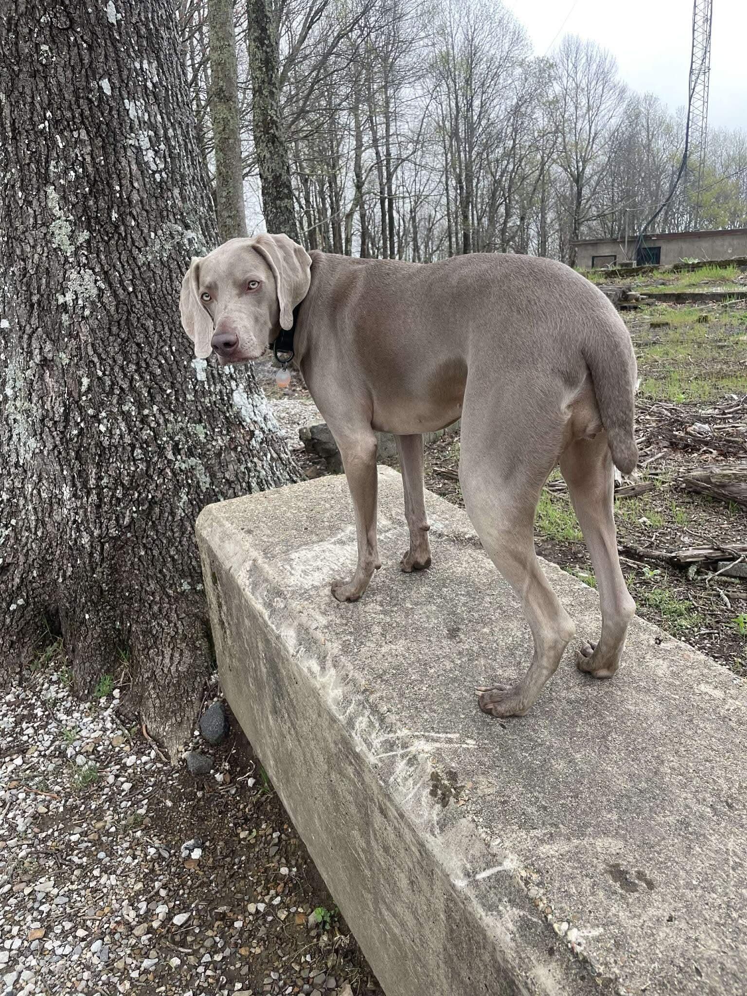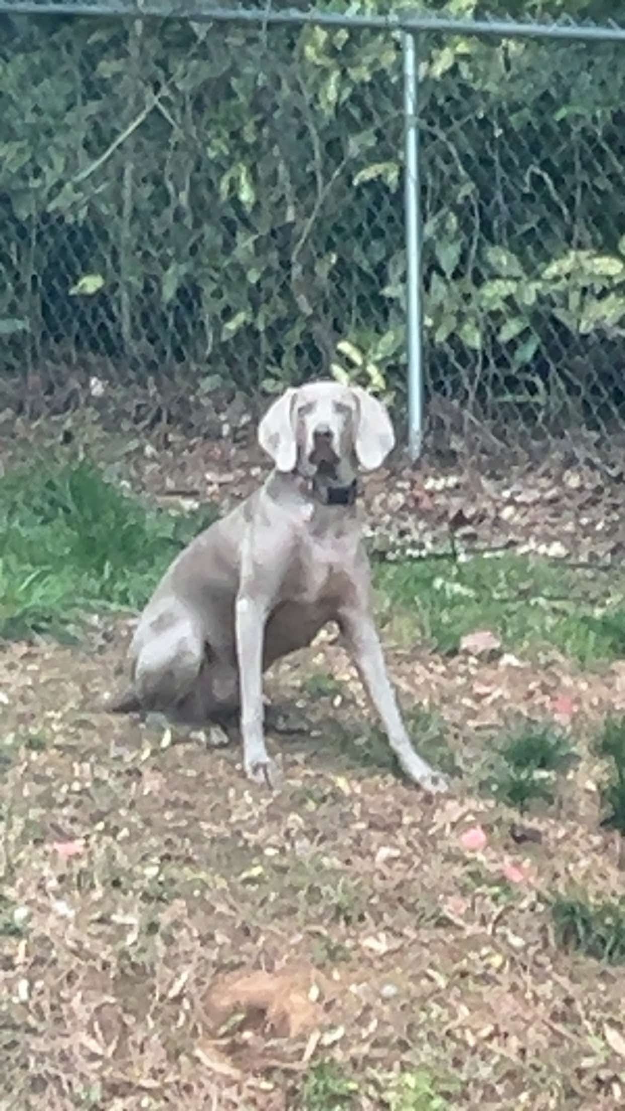 She’s grey and wearing a black collar. She’s skittish and spooks easily but friendly. Please call Matthew at 8035136228 with any info