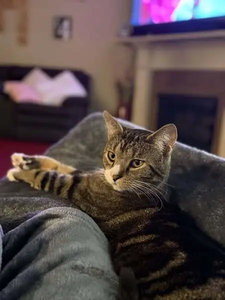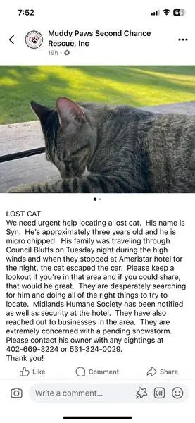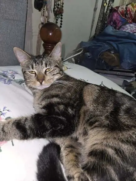 Male cat. Casing the neighborhood for a while. Lanky and long. Thin and hungry. Loud meow, fixed, no chip. Very friendly.