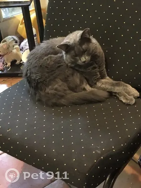 Large, sweet, shy boy cat. Grey with yellow eyes. Sounds like a kitten but he's 5. Lost early morning Sunday 3/15 (4 or 5 am). No collar but microchipped. Responds well to sweet talk